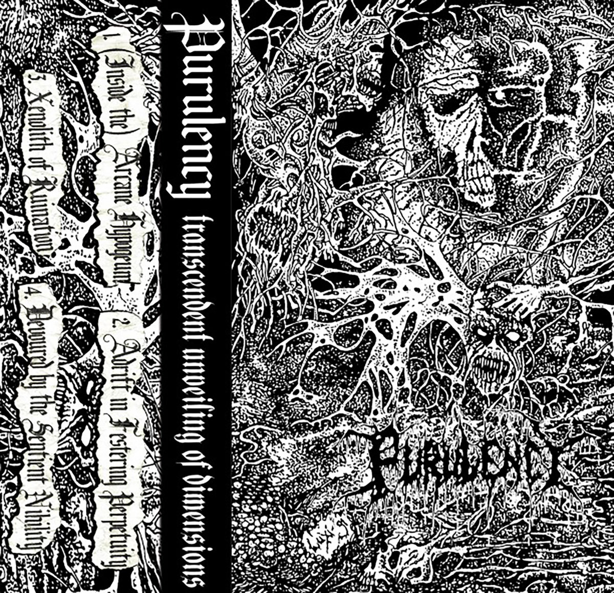 Transcendent Unveiling of Dimensions, the demo from Tennessee newcomers Purulency, is pure fucking death metal. Out this Friday, January 26 on Caligari Records, Transcendent Unveiling contains four songs of pure death metal worship inspired by the likes of Demilich, Grave, Abhorrence, Autopsy and Convulse.
